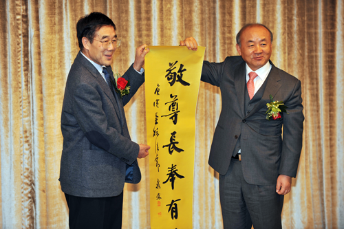 During the ceremony, Ambassador Liu Youyi and Executive President of RUC Yuan Wei delivered speeches respectively. Ambassador Liu Youyi expressed his Praises to this exhibition which provided a precious chance to the Chinese and Korean art circles and People from all circles who loved calligraphy. Executive President Yuan Wei pointed out that cultural exchange between the two countries promoted the exchange and co-development of the two countries’ cultures and advanced the friendship between the two countries. Many other guests made speeches in the ceremony, and the two sides exchanged presents.